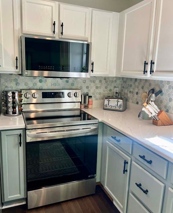 We transformed the kitchen with sleek new cabinets and elegant countertops that enhance both style and functionality. A vibrant backsplash adds a stunning focal point, while updated hardware and lighting fixtures create a contemporary feel. Removing the soffits opened up the space, making it feel larger and more inviting. We also installed state-of-the-art appliances and new outlets, optimizing convenience and efficiency. This renovation has turned the kitchen into a stylish hub for cooking and entertaining, perfect for family gatherings and culinary creativity.